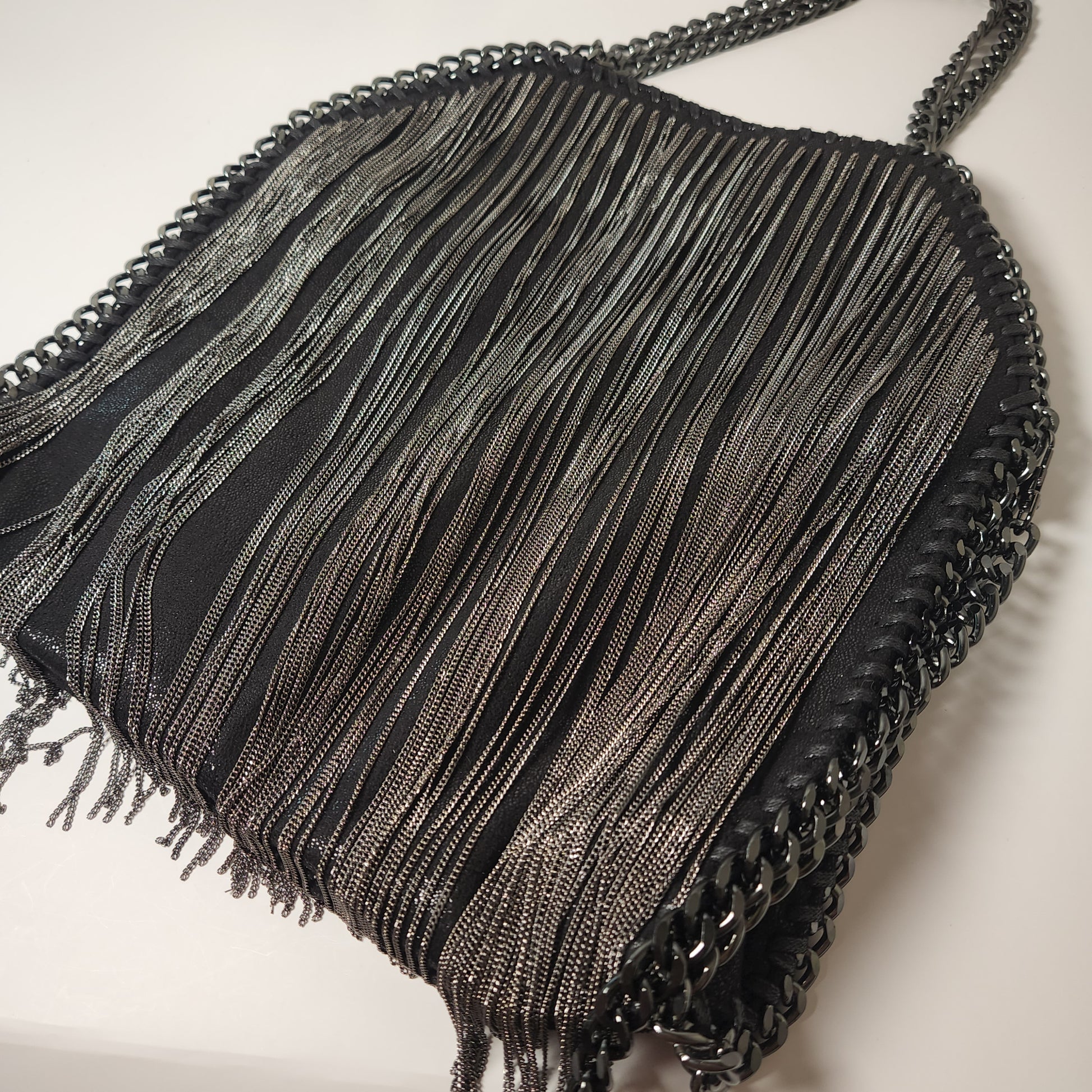 Black Chain Fringe Hexagon Purse