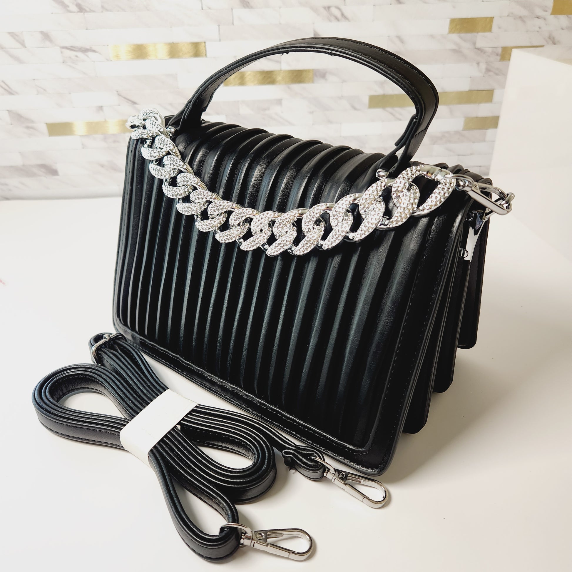 This soft and sleek purse honestly is a mood. The textured outside pairs well with the bling chain, looking elegant and trendy without breaking the bank.