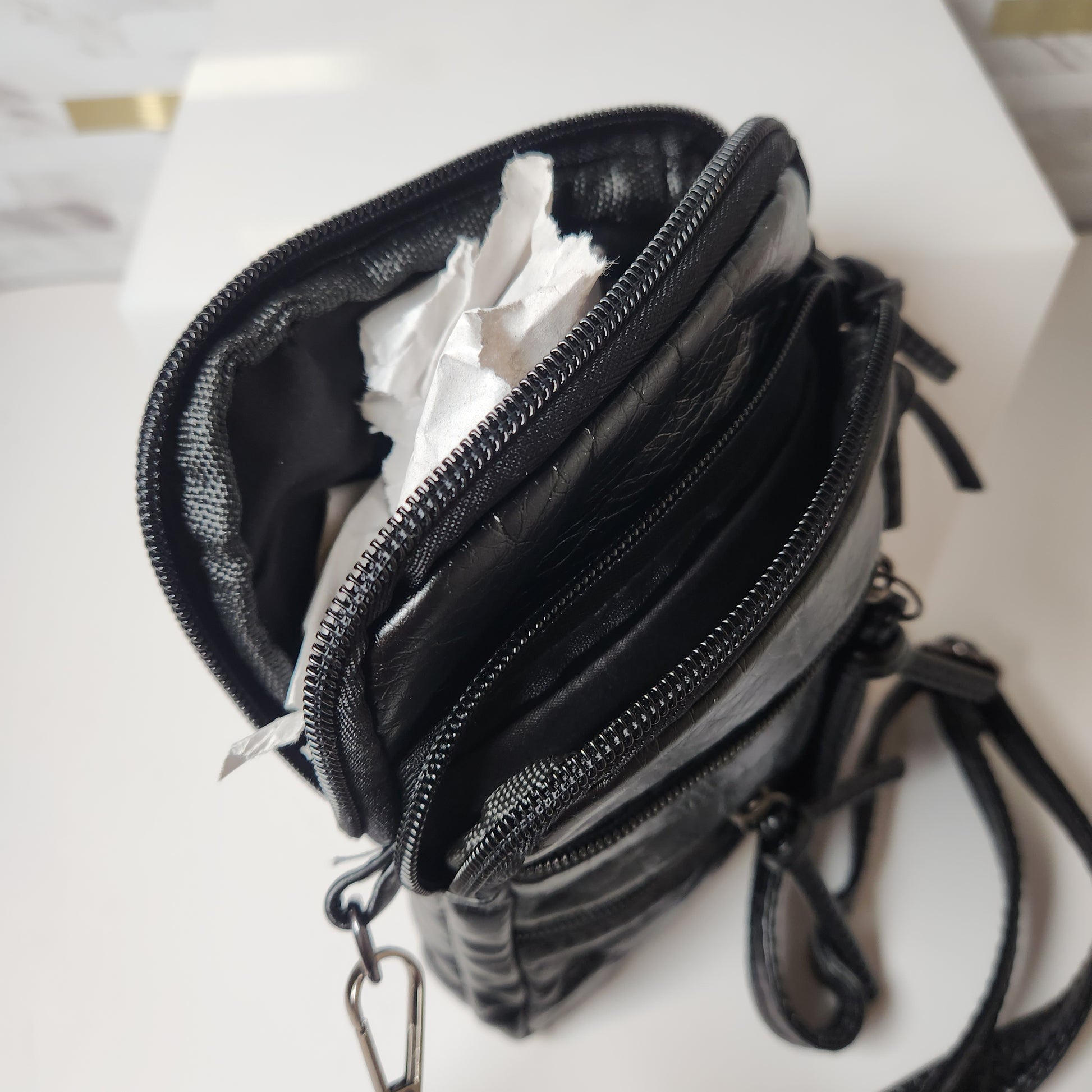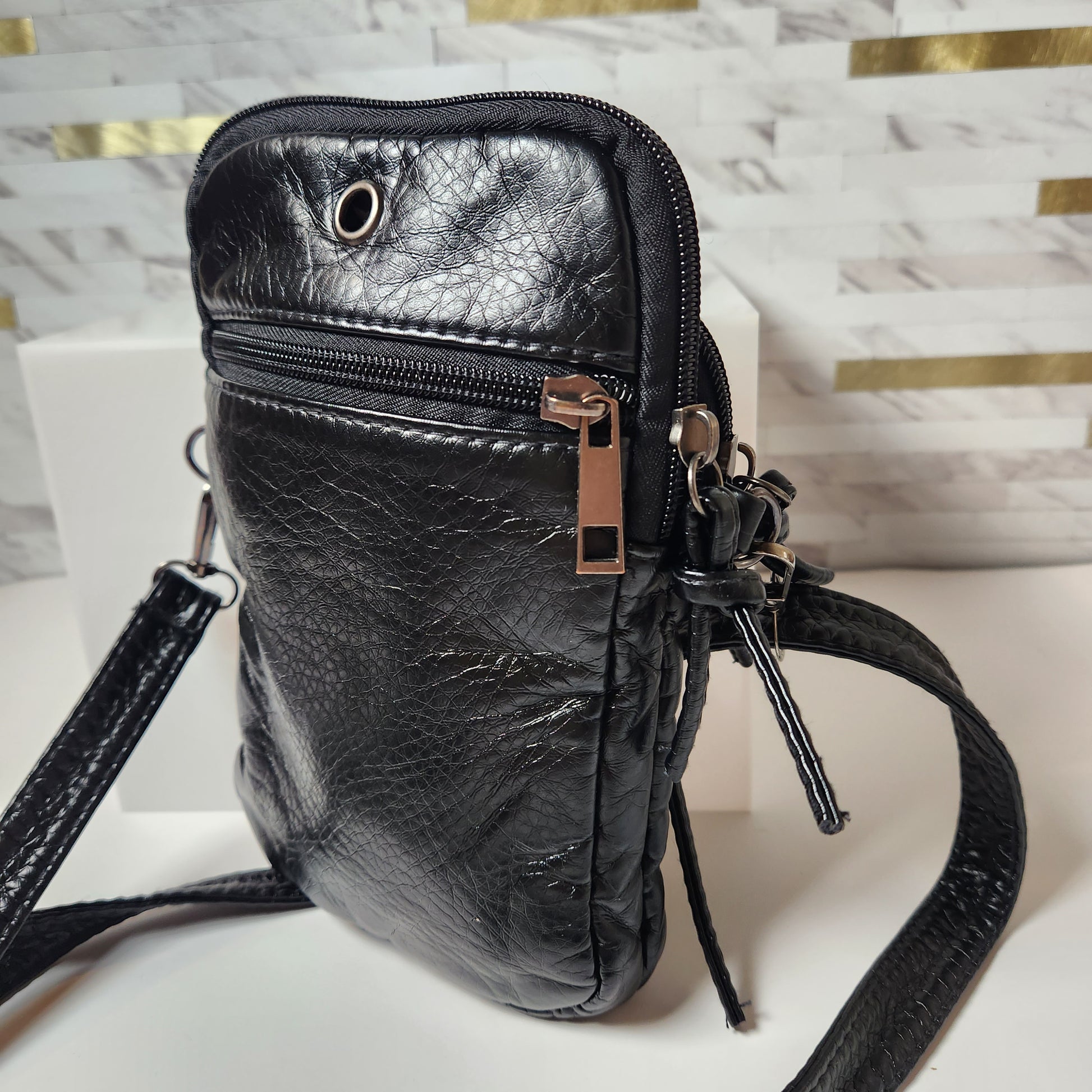 Black Soft Washed PU Leather Mini Zippered Crossbody