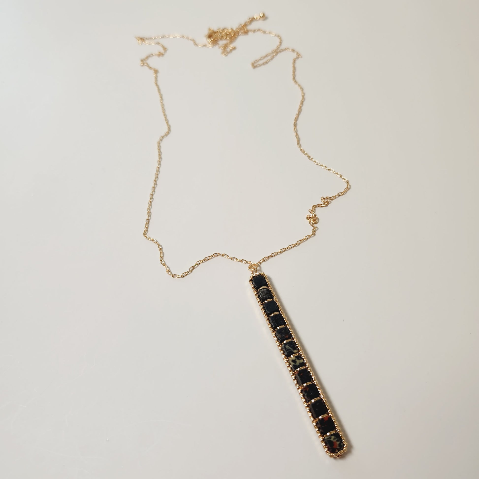 Long Black Semi-Precious Beaded Bar Pendant Necklace