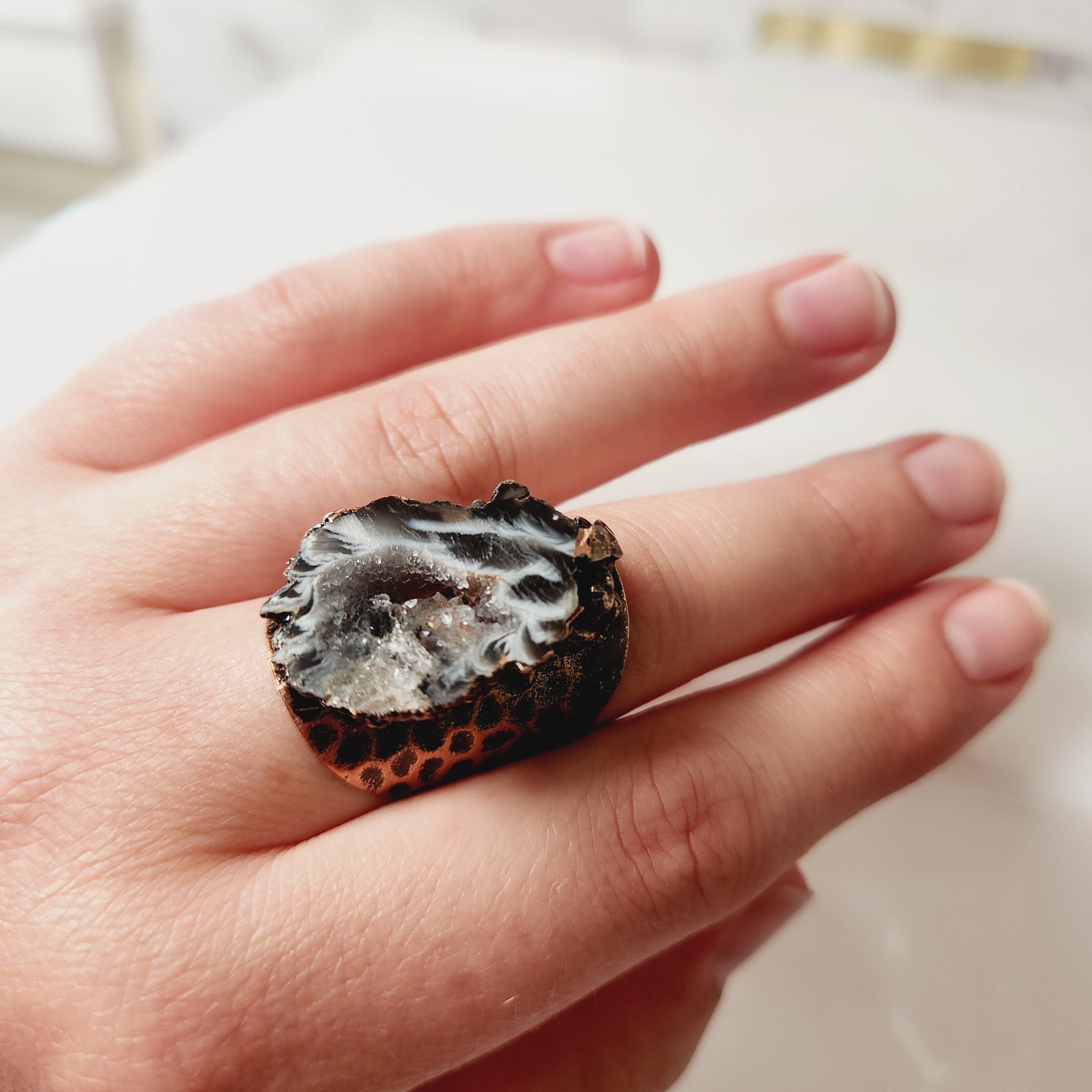 Bohemian styling makes this ring your new go-to! This is a slice of happiness on a ring. The gemstone really sparkles in the light!