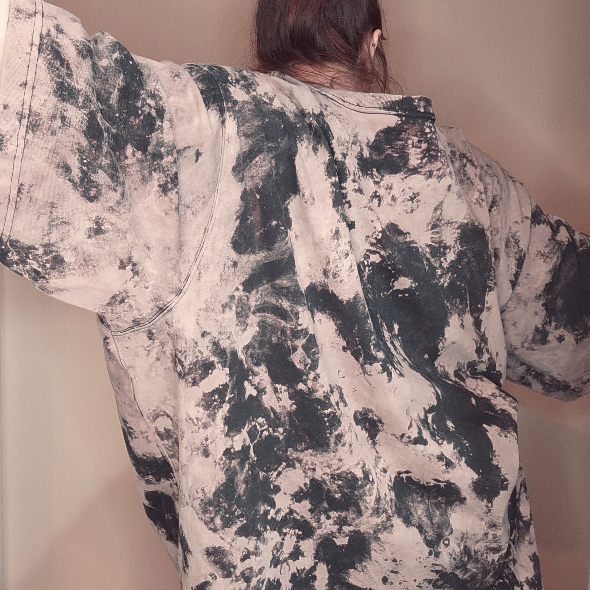 Each shirt is custom bleached by me so each one will be slightly unique! Chest width is a generous 33" wide.