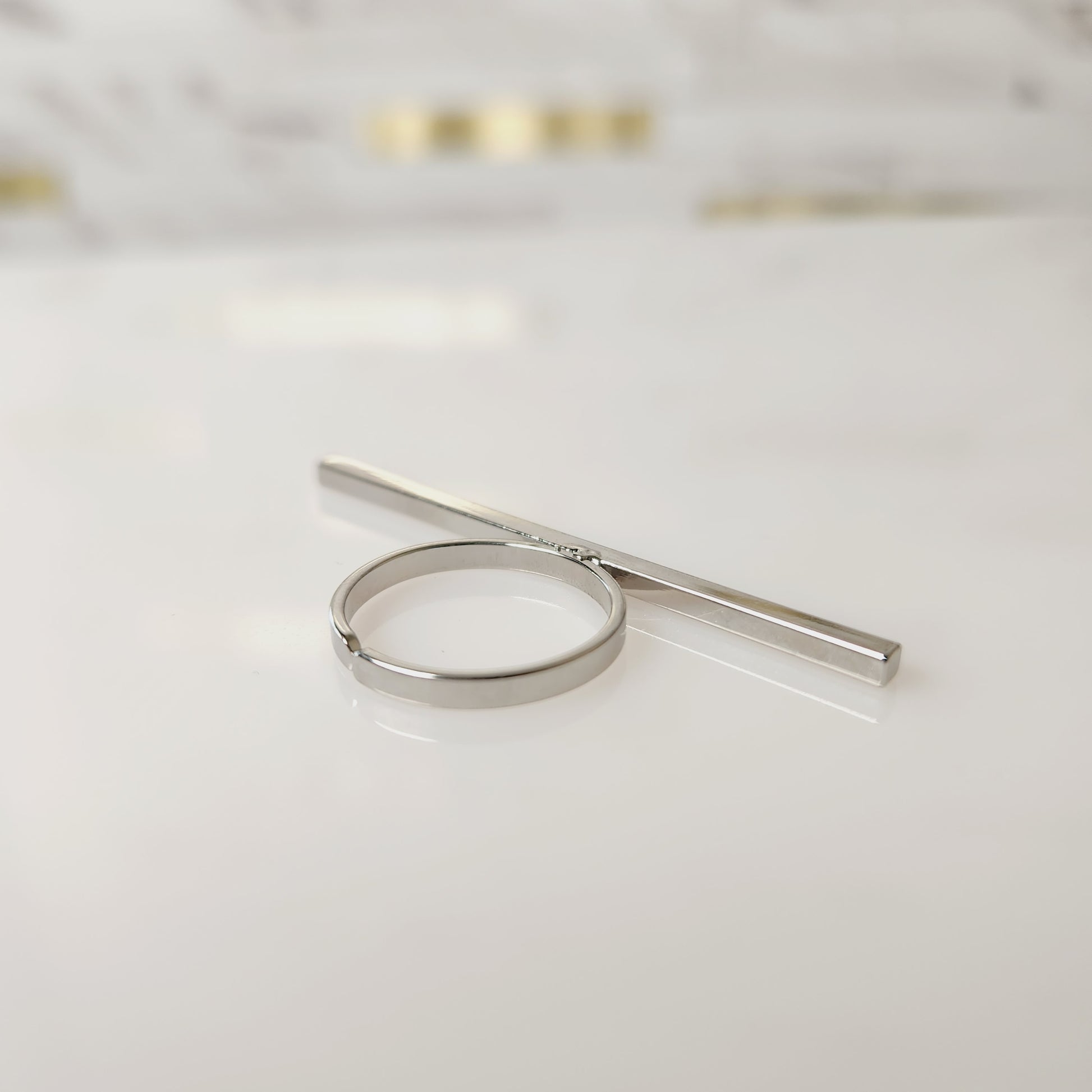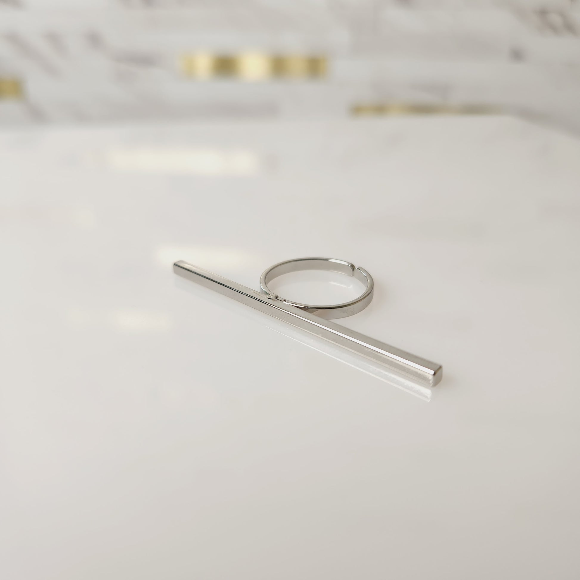 Silvertone Long Square Bar Statement Ring